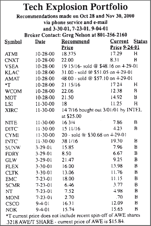 October - November 2001 "New Buy Recommendations - Tech Explosion Portfolio" _________________ back to NEWSLETTER |
