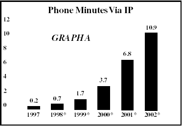 When we first recommended TLTG, management estimated that for 1999 revenue would equal $30 million and net income/share would be at least .30/share. This in itself is quite dramatic since most internet related issues never really talk about earnings. Within a press release dated April 5, 1999, they had announced that they had already signed their third contract signed with major US telecom carriers and provide international termination of voice, fax and data transmissions using Teltran VoIP Service. According to President and CEO Byron Lerner, After all installations are completed, we fully expect to be transmitting approximately 5 million minutes per month from the three contacts we have signed. The $12 million in annual revenues that we will realize from the contacts will give Teltran a base from which to grow as new countries are added to the TVS network. It appears as though we are on target to meet or even exceed my earlier projections of revenue in excess of $30 million annually and earnings of $.30 per share. In addition, Teltrans President and CEO said, With the Teltran VoIP Service agreements we have recently announced and the continuing improvement and expansion of our web portal, we remain excited about Teltrans short and long term prospects for growth. Note: Graph A only deals with domestic calls. TLTGs main focus is international calling - much more profitable. Growth should actually be greater than domestic because cost is so much higher in the first place. (Note: Domestically you can call via telephone for 10¢/minute nationwide - obviously, not much profit - domestic internet calling very low margins).