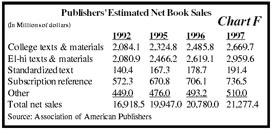 1. K-12 education industry - $300 billion - See Graph E. 2. Total education industry in the United States alone is a $660 billion business. That amounts to about 8.5% of America's GDP - Very bullish for PMKY. 3. Importance of education: The salary gap between those with a high school education and those who have a college degree has increased from about 25% in 1980 to more than 100% today. 4. Business of education is essentially recession proof. Bullish for PMKY. 5. 31,000,000 students attending high school and the first two years of college in the U.S. - Bullish for PMKY. 6. A growing, literate population with high levels of disposable personal income provides strong support for U.S. publishers - Bullish for PMKY. 7. College texts, EL-hi test and materials and standardized tests show consistent growth - Bullish for PMKY. See Chart F. |